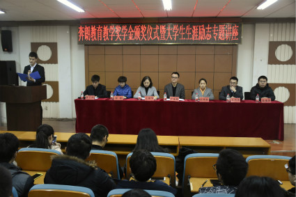 在西校区电气馆A101室举办了奔朗教育教学奖学金颁奖仪式暨大学生生涯励志专题讲座。奔朗新材料股份有限公司董事长、总经理尹育航,嘟嘟成人网