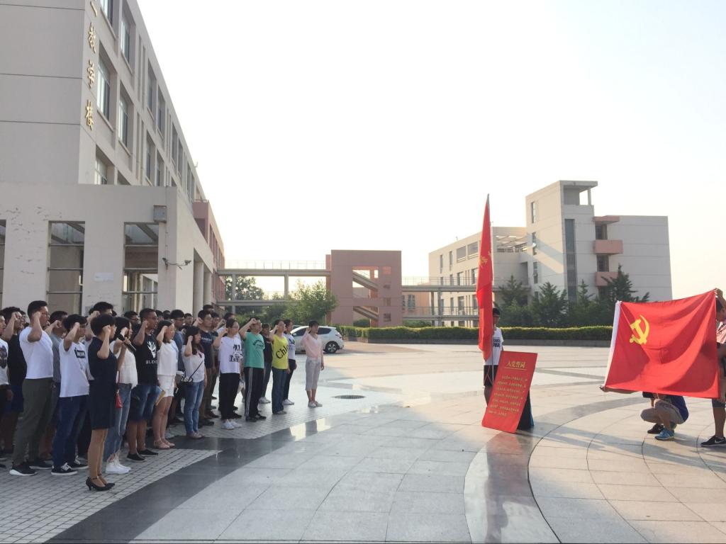 伴着晨起阳光的照耀,随着慷慨激昂的国歌旋律,五星红旗缓缓升起,同学们在行注目礼的同时,庄严的唱响《义勇军进行曲》,共同回忆历史,缅怀先辈。之后宣誓环节,全体学生党员面向党旗庄严宣誓,短短80个字的誓词是他们“站稳党和人民立场,忠于党、忠于国家、忠于人民”的忠诚誓言,是认真践行"学党章党规、学系列讲话,做合格党员"的决心。最后,作为毕业班辅导员,王亦晨老师向毕业班学生党员提出了:时刻以一名党员的身份严格要求自己,各方面起到模范带头作用,做到“崇德修身、明辨自持、笃实行久”的希望。