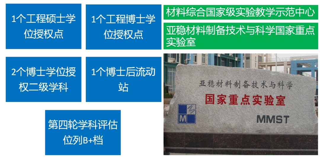 本专业具有浓厚的材料工程及研究背景,聚焦学术前沿,紧密围绕国家、区域重大战略需求,在超硬材料研究、玻璃生产仿真等领域具有国际先进水平,与多个无机非金属材料大型骨干企业和研究院所建立了密切的合作关系。专业所依托的材料科学与工程学科为一级学科国家重点学科,在第四轮学科评估排名中位列B+档,进入全国前20%行列。专业所在学院拥有材料科学与工程1个博士学位授权一级学科,1个博士后流动站,2个博士学位授权二级学科,1个工程博士专业学位授权点,1个工程硕士授权领域。