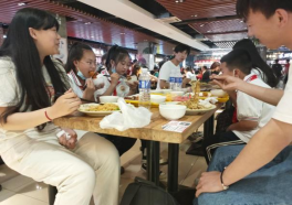 实验室参观体验结束时已近中午,学院特别安排每位毕业生党员带领两名小朋友一起在西校区网红食堂“大榕树”,实地体验大学生活品尝食堂的饭菜佳肴,同时进一步加强相互交流,让大家畅所欲言,可以提出自己对于未来大学生活的想法和疑问,毕业生党员为小朋友耐心解答,鼓励他们好好学习,将来考上自己理想的学校。用餐后,毕业生党员将小朋友们送上返校大巴车,大家挥手告别,期待下次相聚。