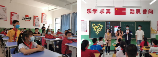 毕业生党员于5月18日上午在学生党支部书记冯晶、王妍、魏东的带领下,赴石门寨石岭小学开展主题为“重温历史、缅怀英雄”义教活动。在校园广场上,毕业班党员将用特殊党费购买的图书捐赠给了各个班级,并与小朋友们一起进行了广播体操及石岭小学特色活动——抖空竹。随后,大家分组在各班老师的带领下进入班级和小朋友们一起学习党史。有的党员以红色景点白洋淀为切入点,向小朋友们讲述小兵张嘎的英雄事迹;有的党员为小朋友们普及了党徽、党旗的组成以及代表含义;还有的党员通过教小朋友们唱红歌的方式,重温历史、缅怀先烈。形式多样的活动让小朋友们了解了党带领全体人民取得胜利的艰辛历程,对于党也有了更进一步的认识,本次支教也在欢声笑语中,画上了圆满的句号。