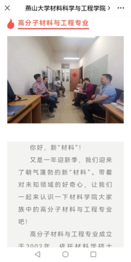 “双节”当天,面对新生们即将开启燕园生活之际,学院各工会小组的老师们通过学院微信公众号,与大家“见面”,对新生表示欢迎,同时深情寄语:首先是坚定理想信念,做好职业生涯规划;随后向大家介绍了学院高水平的教师队伍、优越的科研条件、学生参加各类创新创业项目和竞赛的鼓励政策,希望同学们主动抓住和创造机遇,夯实专业基础,拓展知识的深度和广度,培养解决复杂问题的能力;最后希望常怀感恩之心,树立正确的人生观和价值观。