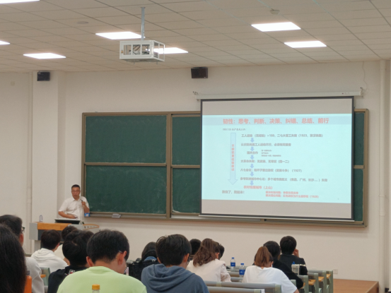 王利民院长首先引用了张伯苓的“爱国三问”,向在场的培训学员提出了“入党三问”。随后结合中国工农红军长征、共产党从工人运动到逐渐摸索出农村包围城市道路,详细讲解了共产党韧性的优秀品质。阐述了马克思主义理论作为共产党强大的理想信念和坚韧意志的强大后盾支撑作用,共产党之所以发展的如此强大,根源是来自于强大的理论支撑、先进思想和战略规划,能够把握时局,精准判断,解决时代重大课题。鼓励青年学生对马克思主义理论多进行思考和体会,坚定对中国共产党的信仰!利用马克思主义理论中的辩证唯物主义和历史唯物主义,用发展的眼光来看待事物,提高认知和综合判断能力,增强决策自信,处理复杂问题,在今后的学习和工作中,抓准主要矛盾,进行科学决策。