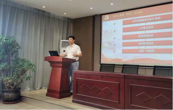 张世良老师围绕“什么是‘四有’好老师”“为什么要做‘四有’好老师”“守好高校教师职业道德底线”“身边人身边事”四方面内容,对新时代师德师风建设内涵及“四有”好老师标准进行详细解读。结合学校实际和大量师德师风真实案例,以案说纪、以案说法、以案说德、以案说责,警示学院教职工要引以为戒,牢固树立底线意识,自觉筑牢思想防线,切实增强遵守教师职业行为十项准则的思想自觉和行动自觉,坚守为党育人、为国育才的初心,不断涵养高尚师德,争做崇德敬业的示范者。