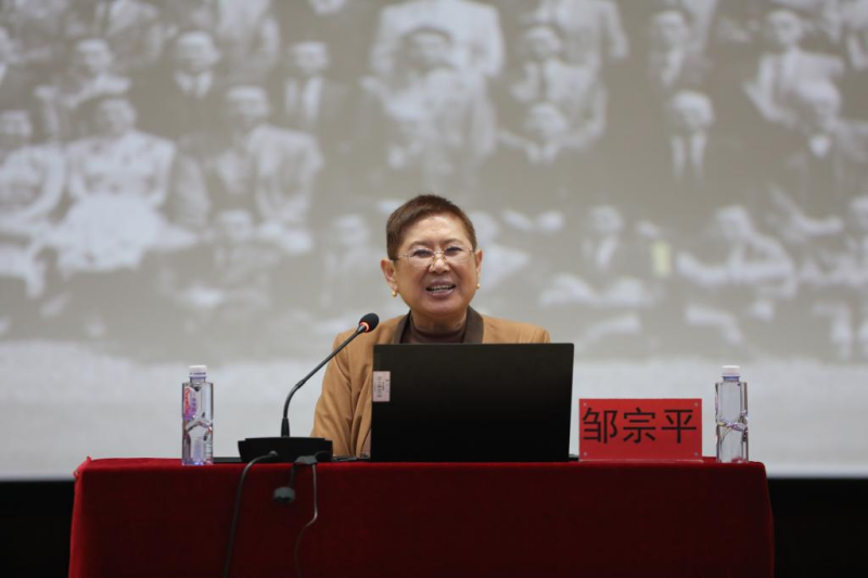 邹宗平老师结合大量珍贵照片资料和亲身经历的事例,讲述了杰出科学家李四光、物理学家李林、生物化学家邹承鲁,一门两代三院士爱国、奉献、奋斗的故事,引领听众回到那段峥嵘岁月,共同体悟伟大的爱国情怀和科学精神。李四光先生倾尽毕生心血,创立地质力学理论;他提出“先找油区、后找油田”的理论,帮中国摘掉“贫油”帽;他指导寻找铀矿,为“两弹”研发奠定坚实基础。受父亲影响,女儿李林先后三次因“国家需要”改行并全身心投入新的科研事业,她参加了中国第一个“反应堆”实验、第一颗原子弹引爆材料工作试验、第一艘核潜艇材料试验,为祖国的原子能工业作出了重要贡献。女婿邹承鲁投身国家基础科学研究,他和他的团队用了8年时间成功实现了“人工合成牛胰岛素”,这是世界上第一个人工合成的蛋白质。一家、二代人、三位院士,他们都把个人理想融入国家事业,作出了不愧于时代的无悔选择,诠释了老一辈科学家们“爱国、求实、创新、育人、奉献”的科学家精神,让现场的师生深受感染和鼓舞。