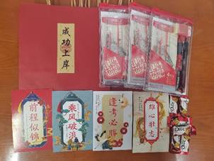 党委副书记王亦晨表示,送上考研礼物就是送上全院师生对考研学子最深情的祝福,必须让学生们实实在在感受到学院的关爱和温暖。学院领导班子成员、各专业系主任、辅导员和低年级同学们历时半个月精心策划、挑选购置,为150位考研学子写下专属祝福,寄语考研学子能在最后关键时刻沉着应考、稳扎稳打、坚持到底,用最佳的状态与最好的心态成就最好的自己。