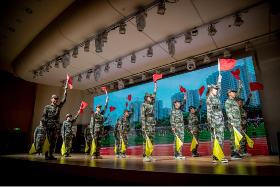 军事题材表演《乘风破浪旗开得胜》气势如虹,用整齐划一的动作尽显少年英姿。