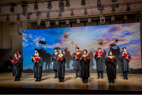 诗朗诵《青春回廊燕园启航》回顾了毕业生们在燕大的学习和生活,表达了他们对母校的感激之情和对未来的美好憧憬。
