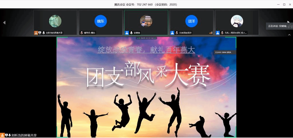 在这场彰显青春风采的赛事中,2019级本科7支团支部通过视频展示和线上PPT讲解的方式展现学校历史底蕴和支部风采特色。视频展示,精彩纷呈,创意十足,呈现出一场献礼百年燕大的视觉盛宴。支部成员们慷慨激昂,爱校荣校,直抒胸臆,情之所至,令人动容。线上PPT讲解,团支书们各施其才,竭力展现本支部风采,基层团建,团日活动,学习生活,志愿服务,全面发展,样样不落,尽显支部魅力。最终,无机非金属材料工程2班团支部凭借高质量的视频展示和精彩的PPT讲解勇夺桂冠。材料物理1班团支部、金属材料工程3班团支部分别荣获二、三等奖。