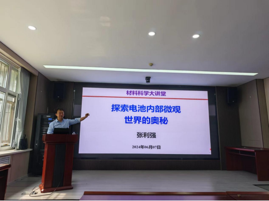 于6月7日上午在材料新办公楼里仁113会议室举办了第10期“材料大讲堂”。本次讲堂邀请到了亚稳材料制备技术与科学国家重点实验室研究员、博士生导师张利强研究员作为主讲嘉宾,为70余名本科生和研究生带来了一场题为《探索电池内部微观世界的奥秘》的学术讲座。活动由学院团委书记魏东主持。
