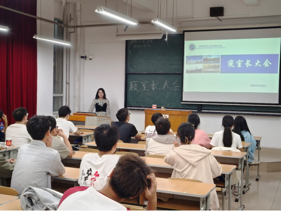 在西二103召开2024级寝室长大会,会议围绕寝室安全及文明寝室建设标准展开,活动由学院学生会承办,全体大一寝室长参会。