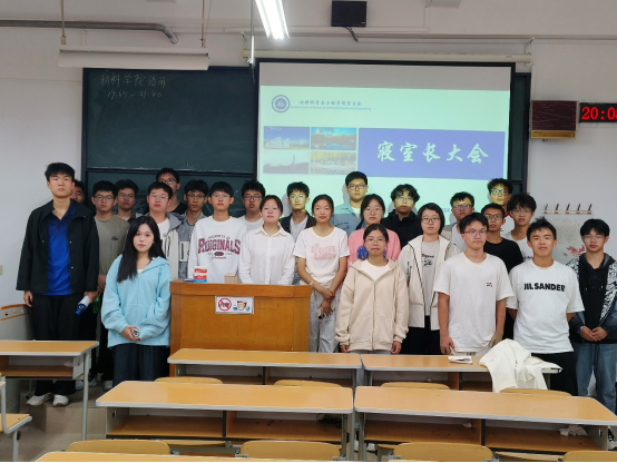 寝室安全及卫生细则》。内容主要涵盖寝室用电安全的问题、卫生检查标准、寝室中现存问题以及相关整改措施四个方面,并对寝室用电安全及违规电器的处理办法进行了着重强调。随后,展示了高年级优秀寝室的照片,优秀寝室的照片既展示了优秀寝室的风采,也为大家形象地提供了内务整理标准,以引起各寝室长的高度重视,并严格按照标准执行。在会议过程中,同学们精神集中,认真听讲并拍照记录,展现了材料学子积极向上的精神面貌以及同学们对寝室生活共同负责的认真态度。