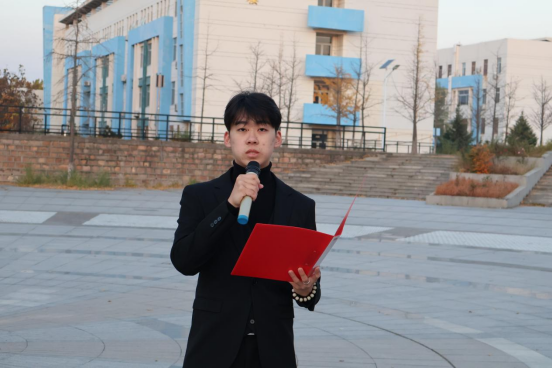 材料类5班班长张博文进行了主题为《在国旗下成长,让青春在母校绽放光芒》的演讲。带领大家回顾了“新中国成立75周年”的光辉历程,号召大家珍惜在校时光,勤奋学习,不断提升个人能力。重温了“厚德、博学、求是”的校训精神,鼓励大家以校训为指引,在学院这片热土上书写属于自己的精彩篇章,为母校增光添彩,为国家的繁荣发展贡献力量。