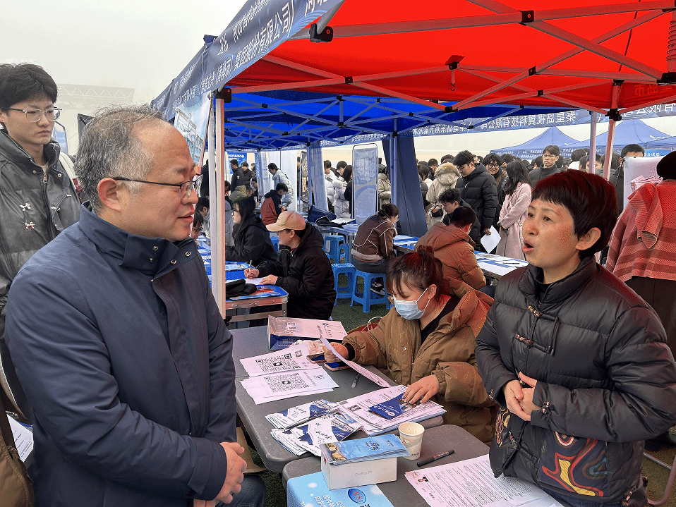 招聘会现场人头攒动,气氛热烈。每到一处展位,学院领导都详细了解企业的业务范围、发展前景及用工需求,并向企业介绍学院的专业设置、教学科研情况以及近年来的毕业生质量。王国伟书记表示,学院始终坚持立德树人根本任务,致力于培养具有创新精神和实践能力的高素质人才,希望企业能够多提宝贵意见,为学院的人才培养献言献策,共同推动产学研深度融合。用人单位对学院领导的到访表示热烈欢迎,纷纷介绍了各自企业的优势和特色,并表达了对学院毕业生的高度认可和期望。