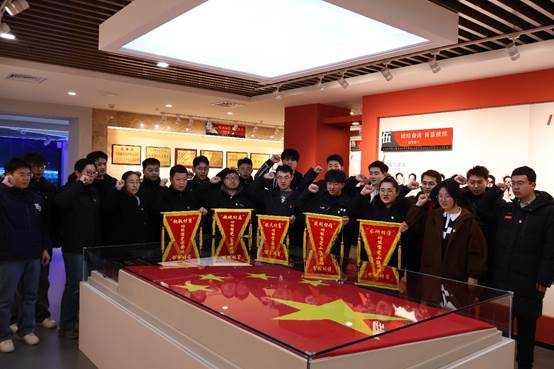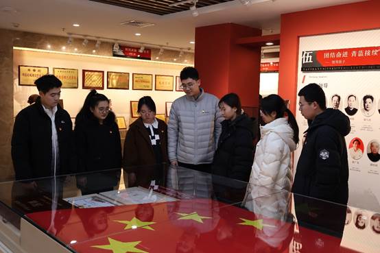 在国旗陈列区,党员们倾听志愿者讲解,深入了解编号为2020-0079的天安门广场国旗背后的故事。这面五星红旗,于2020年9月10日我校“建校溯源百周年、独立办学一甲子”纪念日当天,在天安门广场冉冉升起,它不仅承载着国家的荣耀与尊严,更蕴含着对我校深厚历史底蕴和辉煌成就的深情致敬。国旗见证了国家的繁荣昌盛,也标志着我校教育事业迈入了一个崭新的发展阶段。