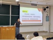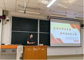 在西二108教室开展以“文明作别书青春,扬帆起航赴山海”为主题的本科阶段最后一课,毕业班辅导员冯晶主讲,全体193名本科毕业生参会。