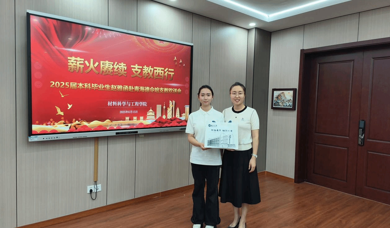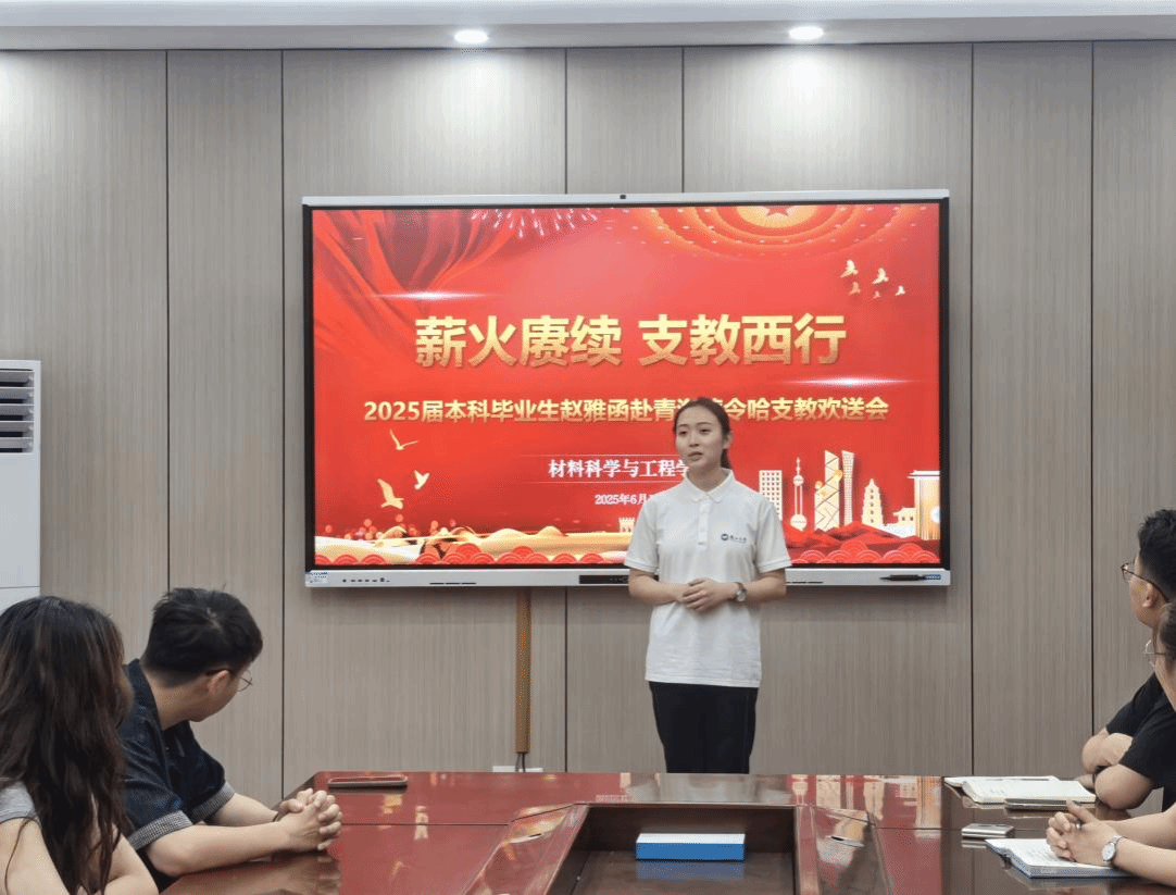 于2025年6月15日上午在材料新楼102会议室,为即将奔赴青海省德令哈市开展为期一年支教服务的2025届本科毕业生赵雅函举办了一场温情满溢的欢送会。学院党委副书记王亦晨、全体辅导员、嘟嘟成人网