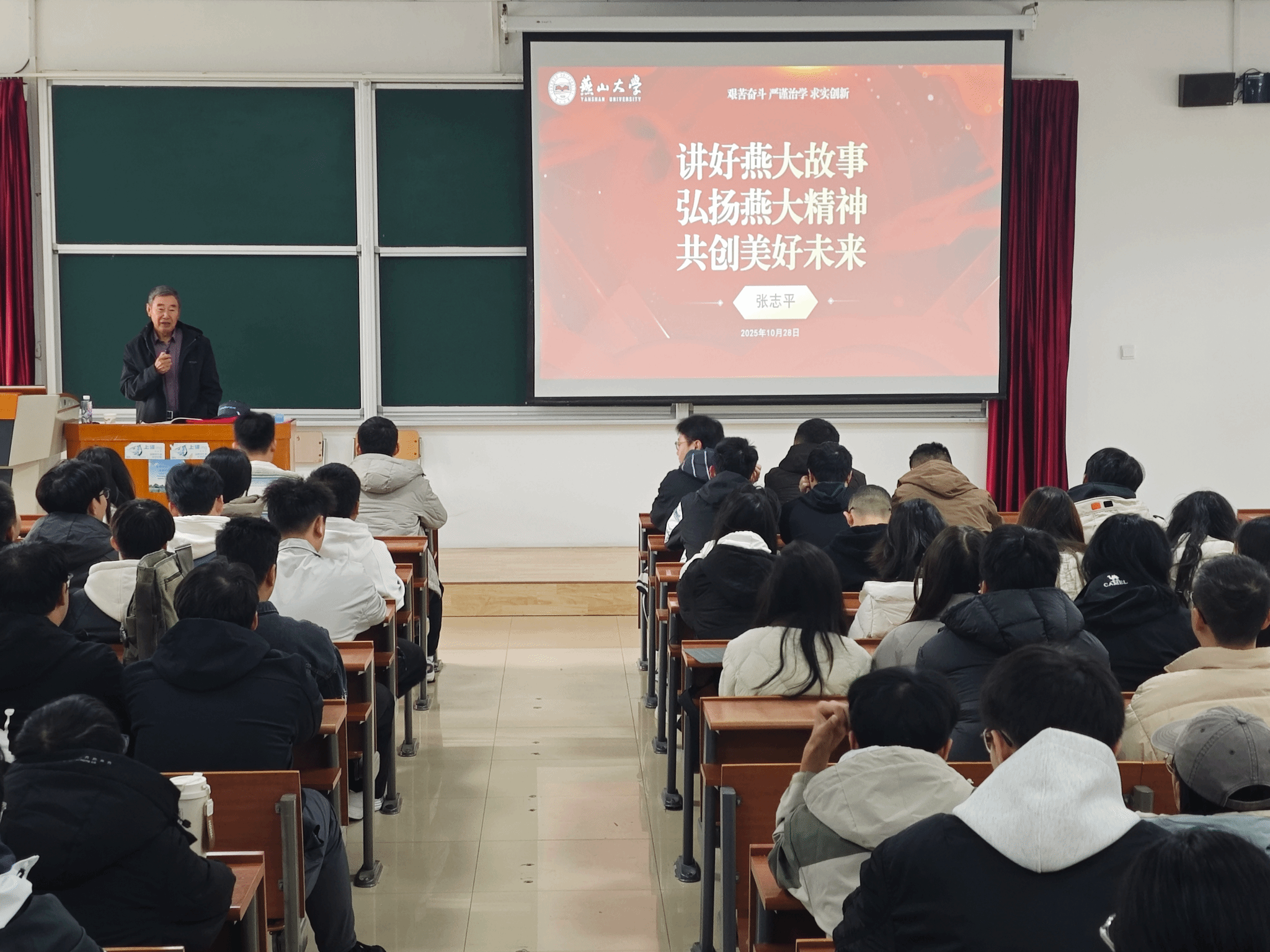 现场师生被张老师生动的讲述深深吸引,讲座气氛热烈,反响良好。同学们纷纷表示,通过这次讲座,“艰苦奋斗、严谨治学、求是创新”的燕大校训不再是抽象的口号,而成为可感可知、可歌可泣的生动实践,令人受益匪浅。