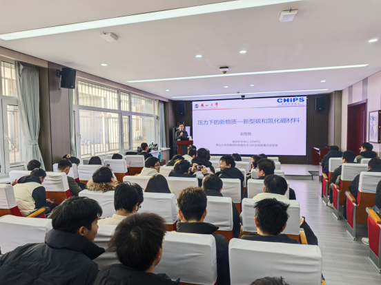 在里仁113会议室举办第12期“材料大讲堂”。本期讲座特邀亚稳材料国家重点实验室赵智胜教授担任主讲嘉宾,围绕《压力下的新物质——新型碳和氮化硼材料》作专题报告。学院团委书记魏东主持活动,百余名本科生和研究生到场聆听。