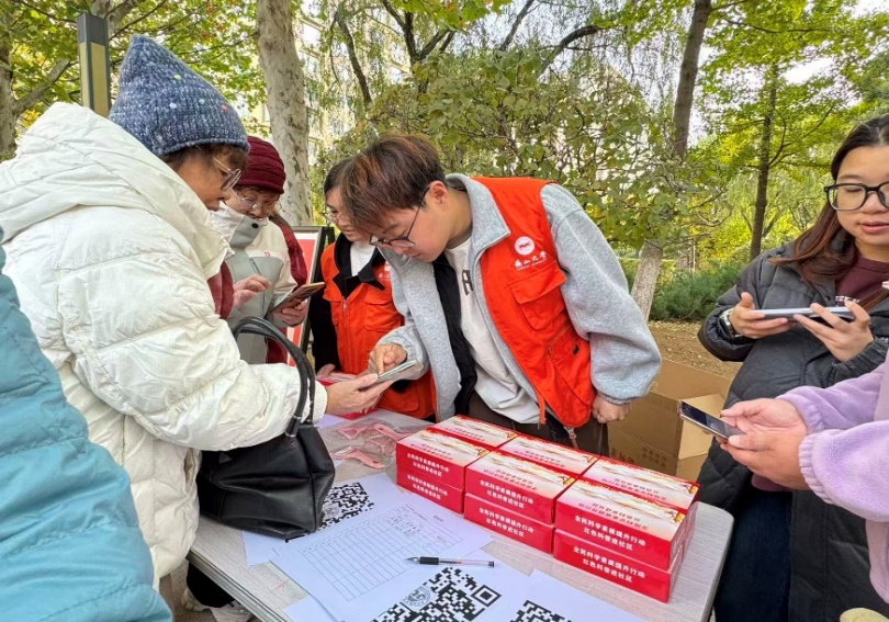 本次活动形式多样、内容丰富,设有健康服务、科普宣讲、互动游戏、扫码答题及《科普法》宣传等多个模块,旨在以寓教于乐的方式提升居民的科学素养,构建了立体化、互动性强的科普宣传矩阵。在服务引导岗,同学们有序分流人群,耐心解答咨询,有效维护了现场秩序;在健康服务区,他们协助专业医护人员进行基础引导与信息记录,提升了服务效率;在游戏互动与扫码答题区,他们则化身科普讲解员,主动向居民演示“科学冀益”小程序的操作流程,讲解线上知识竞赛与积分奖励机制。此外同学们积极向居民发放普法宣传手册、红色知识宣传手册,提升居民在科学普及领域的认知水平和法律素养。